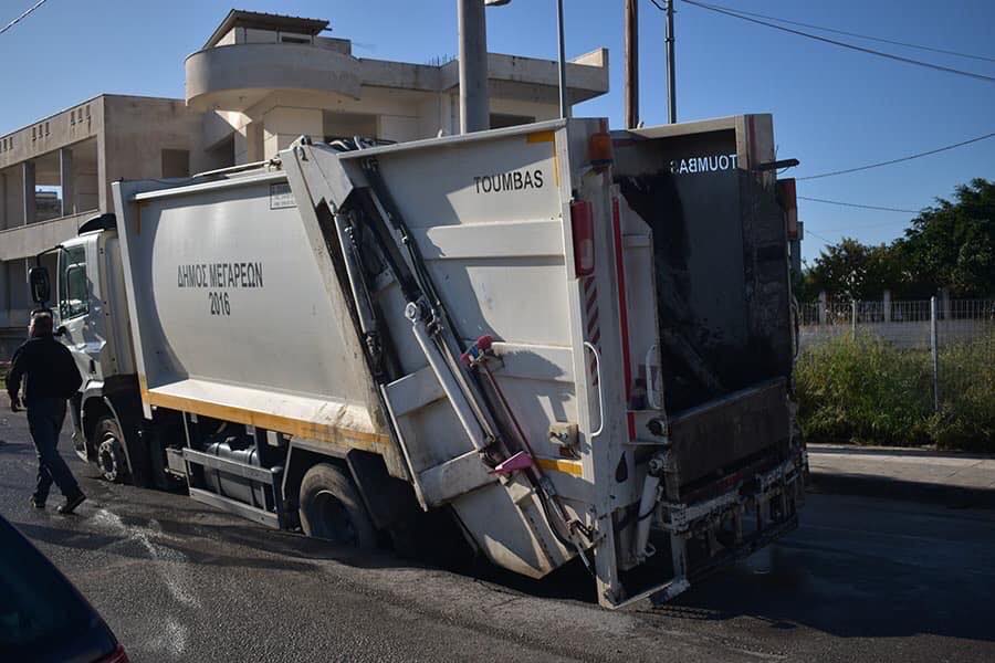 ΜΕΓΑΡΑ - Ο δρόμος κατάπιε απορριμματοφόρο