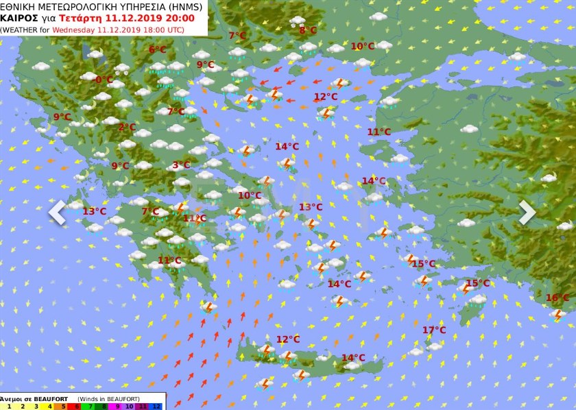 Ο καιρός σήμερα, Τετάρτη 11 Δεκεμβρίου 2019 σύμφωνα με την πρόγνωση της Εθνικής Μετεωρολογικής Υπηρεσίας (ΕΜΥ): Βροχές