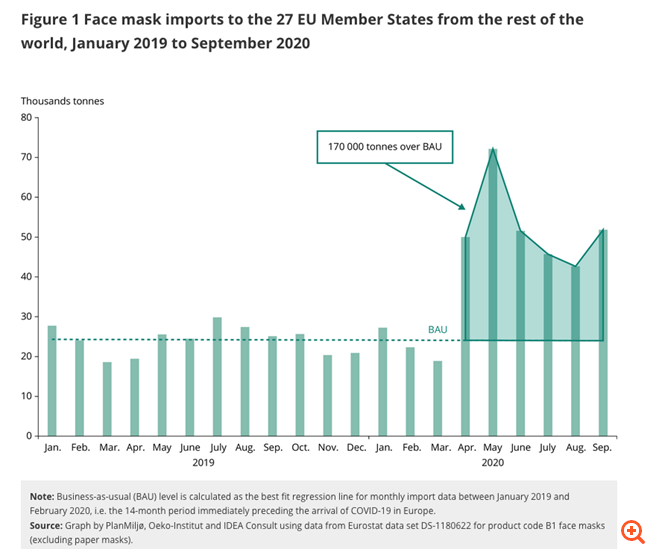 Λαμβάνοντας υπόψη τον ετήσιο αριθμό παραγωγής μασκών μιας χρήσης που φτάνει τα 52 δισ. και το ποσοστό απώλειας 3%, η ομάδα κατέληξε στο συμπέρασμα ότι μέσα στο 2020 περίπου 1,6 δισ. μάσκες κατέληξαν στους ωκεανούς. Ο αριθμός αυτός υπολογίζεται ότι αντιστοιχεί σε περίπου 5.500 τόνους ρύπανσης από πλαστικό.